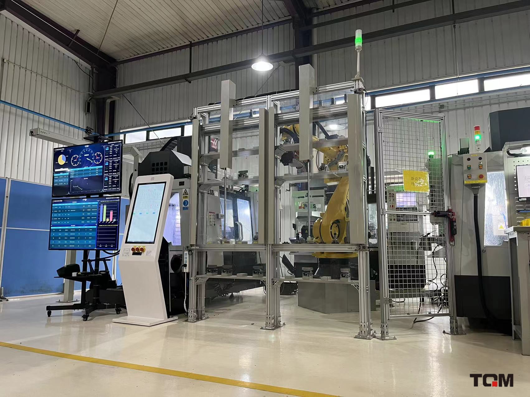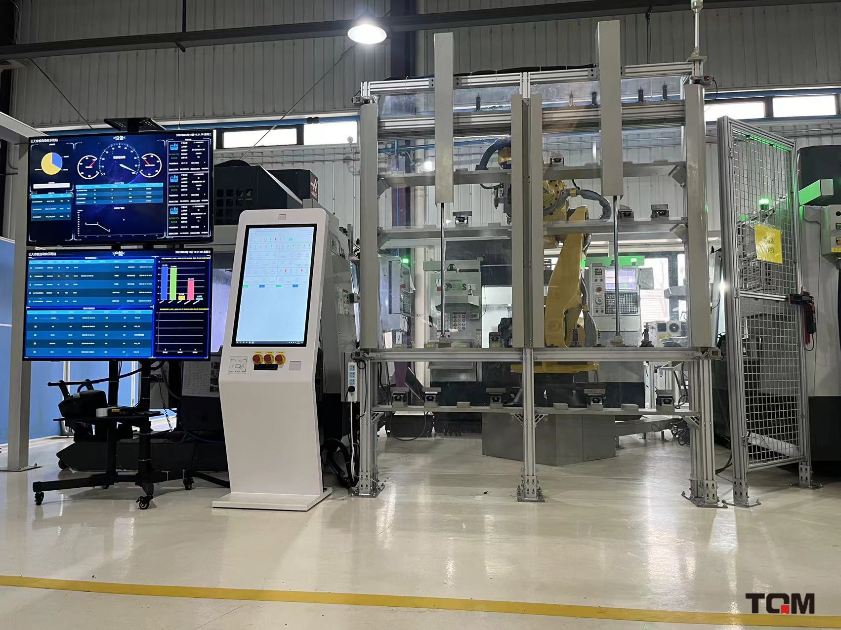 智能柔性生產(chǎn)單元,利用三臺機床及機械臂設(shè)計研發(fā)為島式生產(chǎn)單元,自動調(diào)度智能生產(chǎn)單元內(nèi)進行生產(chǎn)行,機床稼動率達到96%以上。